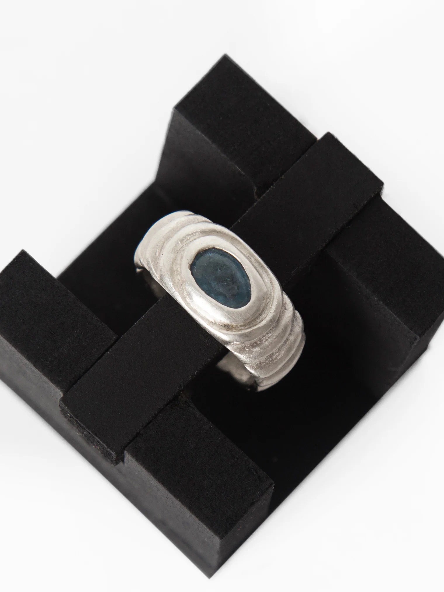 Anillo tallado a mano en plata 925 y turmalina azulada