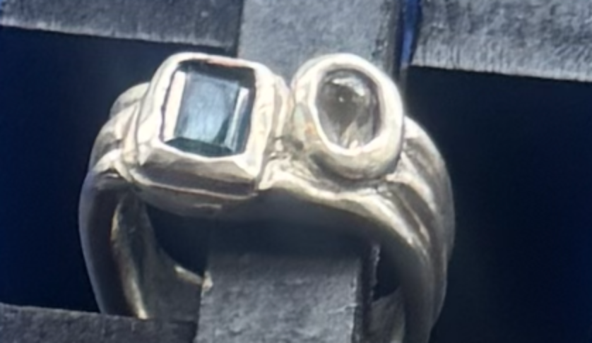 Anillo tallado a mano en plata 925 con turmalina azul y circon natural