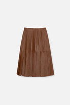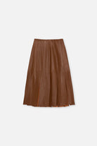 Lobos es nuestra falda de gajos de cuero ovino. Tiene un corte por debajo de la rodilla y un cierre lateral oculto para su acceso.