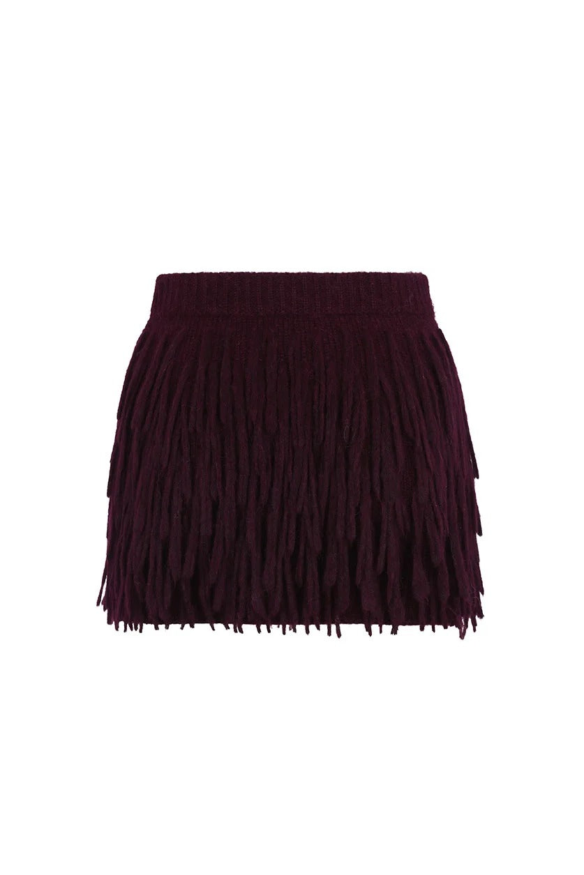 The tayra skirt is a classic model distinguished by its excellent knit design, complemented by fringe details. Its semi-loose cut and soft touch make it a versatile and dependable choice.
