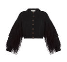 Introducing the Ulta Open Cardigan, a soft textured style with a semi-oversized fit, featuring fringe detailing on the sleeves.